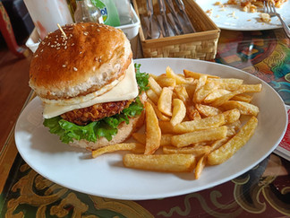 We had lunch at a place called Sherpa Barista Bakery & Coffee shop. We got some pies, cakes and burgers!